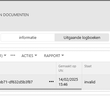 In Peppol verzonden documenten kunt u de factuur in het rood zien staan met de status 'invalid' als er iets is misgegaan bij de verzending van de factuur.