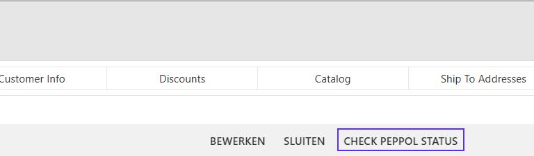 Ga in het klanten menu naar de klant, klik op de klant voor de details, en selecteer ‘Customer Info’. Onderaan het scherm vindt u de knop ‘Check Peppol Status’