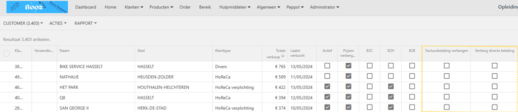Als u de module ‘Direct online betalen’ hebt bijgenomen, zal u opmerken dat er op de klantenlijst twee kolommen zijn bijgekomen: