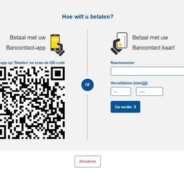 Direct online betalen: Bij het selecteren van deze optie wordt de klant doorverwezen naar de Bancontact-pagina om de betaling af te ronden.