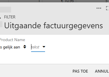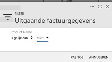 Hier kunt u dan op productnaam filteren.