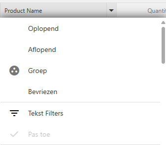 Klik op het pijltje naast de kolomtitel ‘Productnaam’.